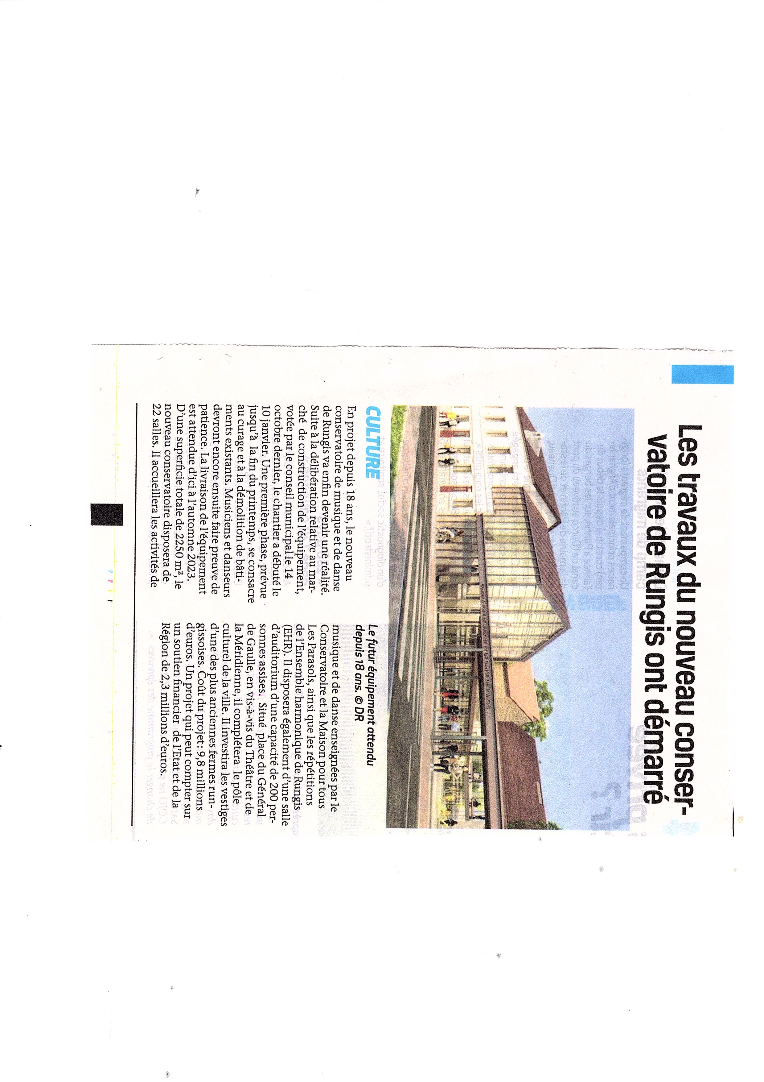 « Les travaux du nouveau conservatoire de Rungis ont démarré » Les Echos - 28 janvier 2022